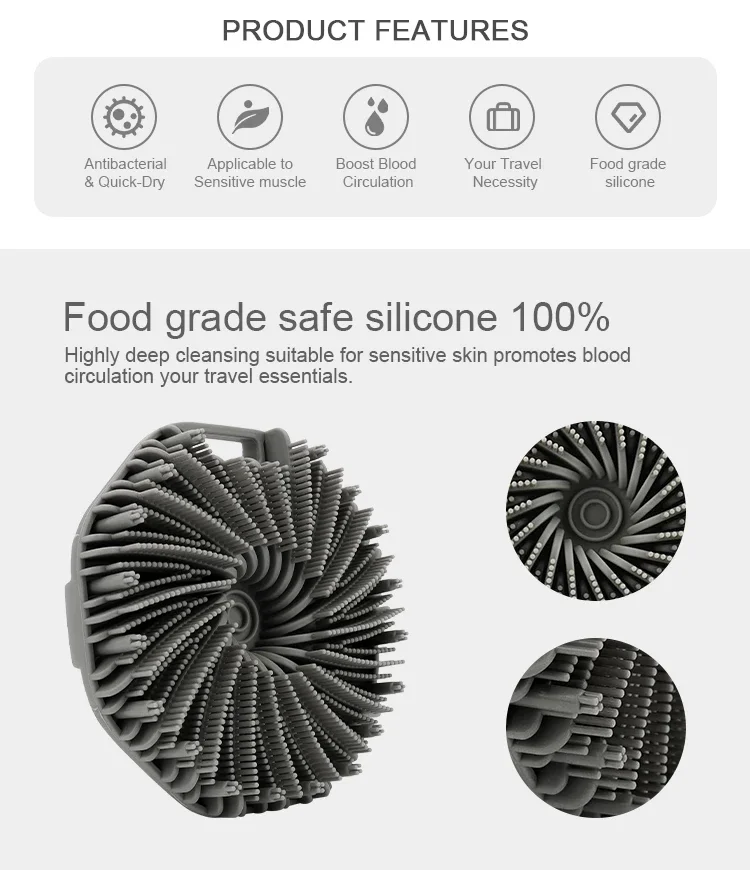 Soft Silicone Body Scrubber Bath Brush With Ergonomic Handle Portable Shower Massage Cleaning Exfoliating Home Tool